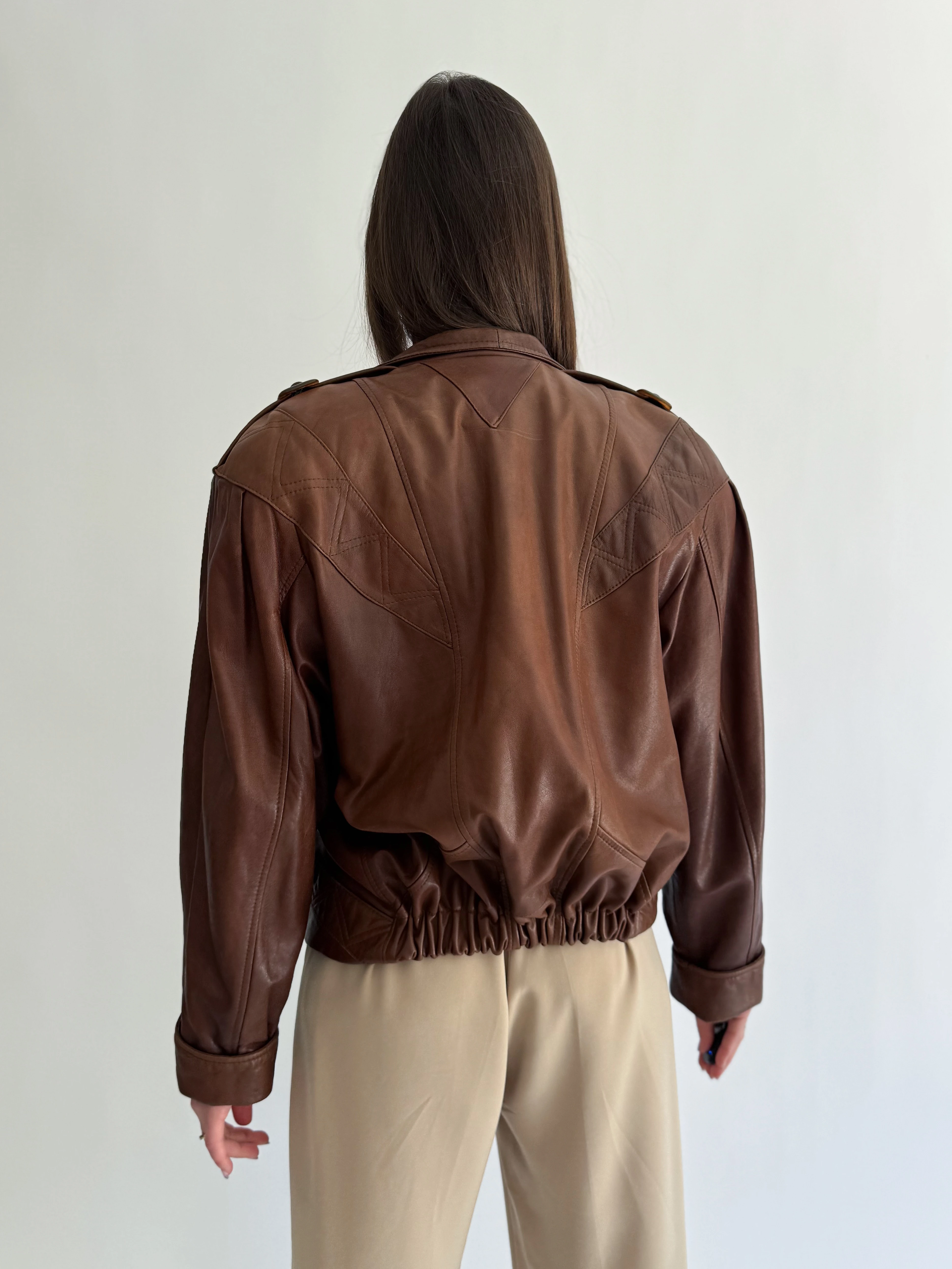 Brązowa skórzana kurtka