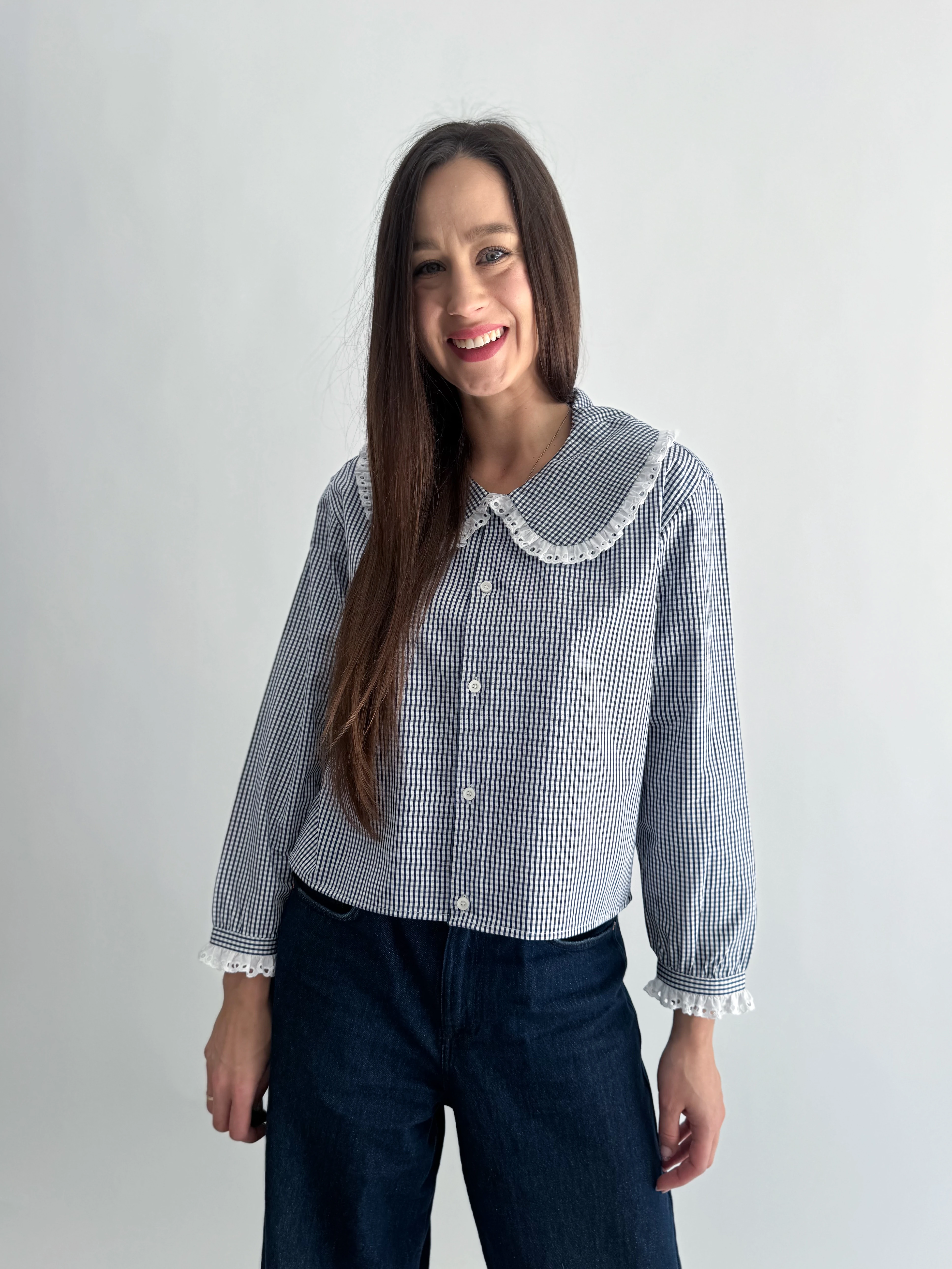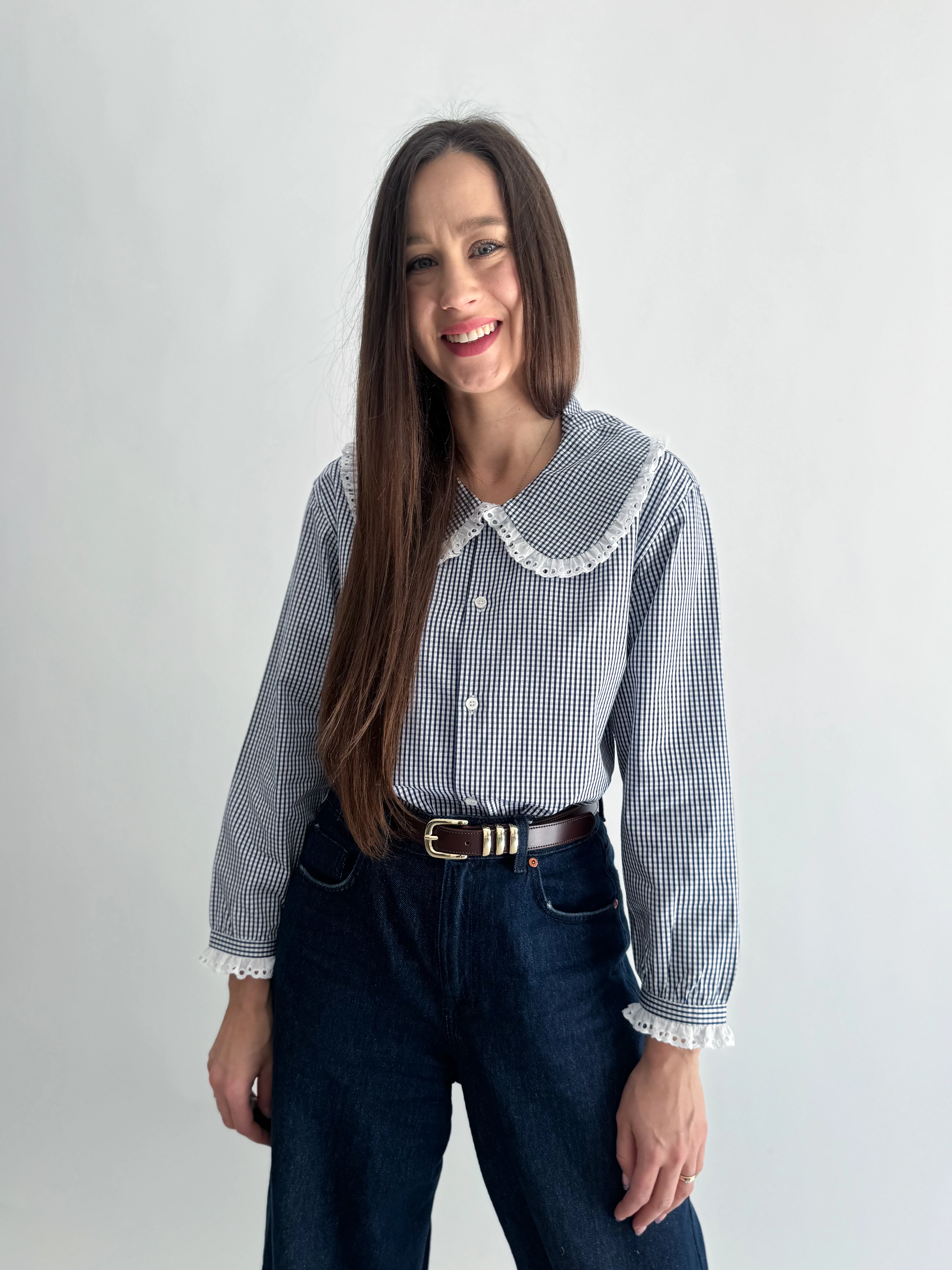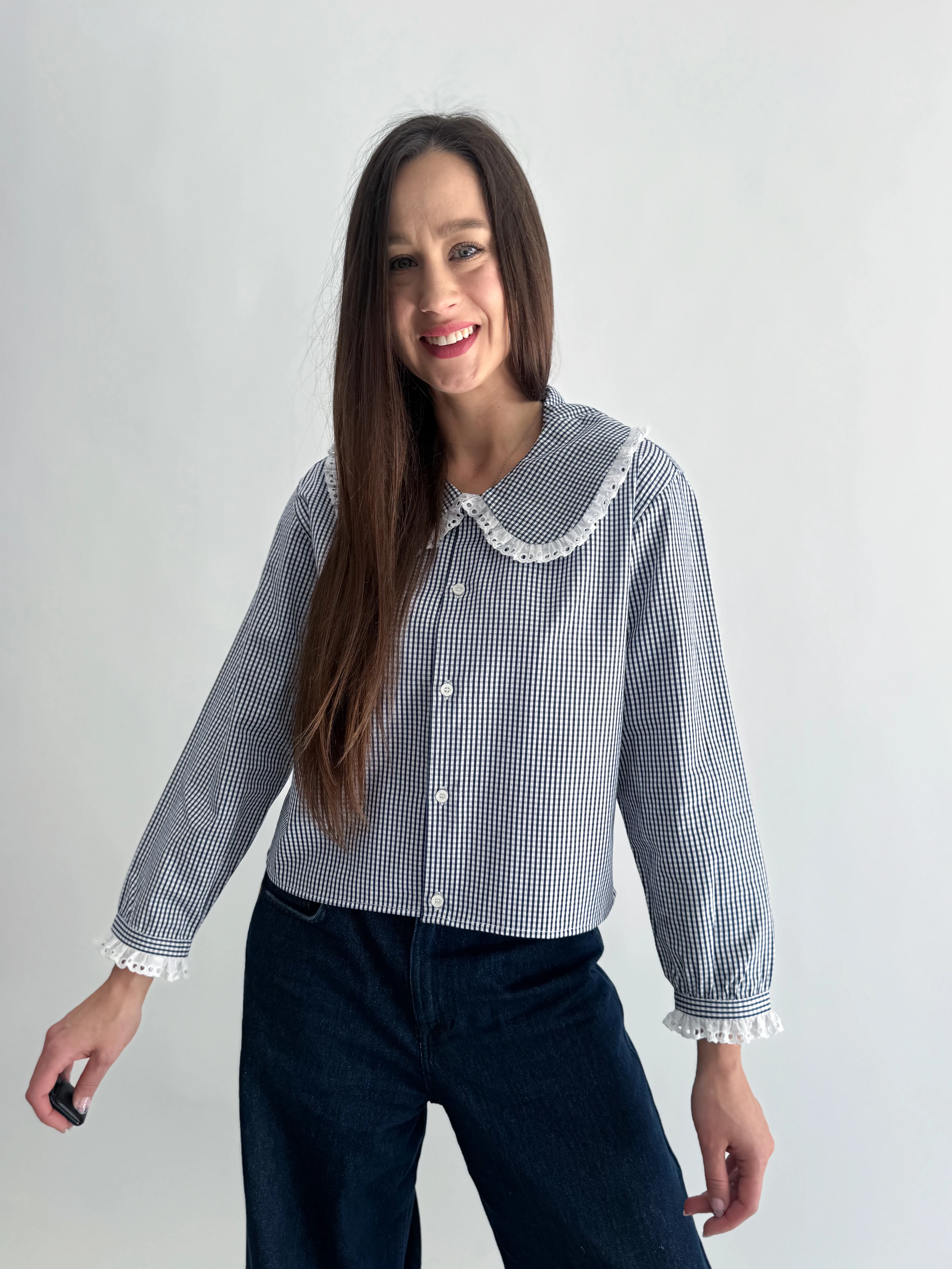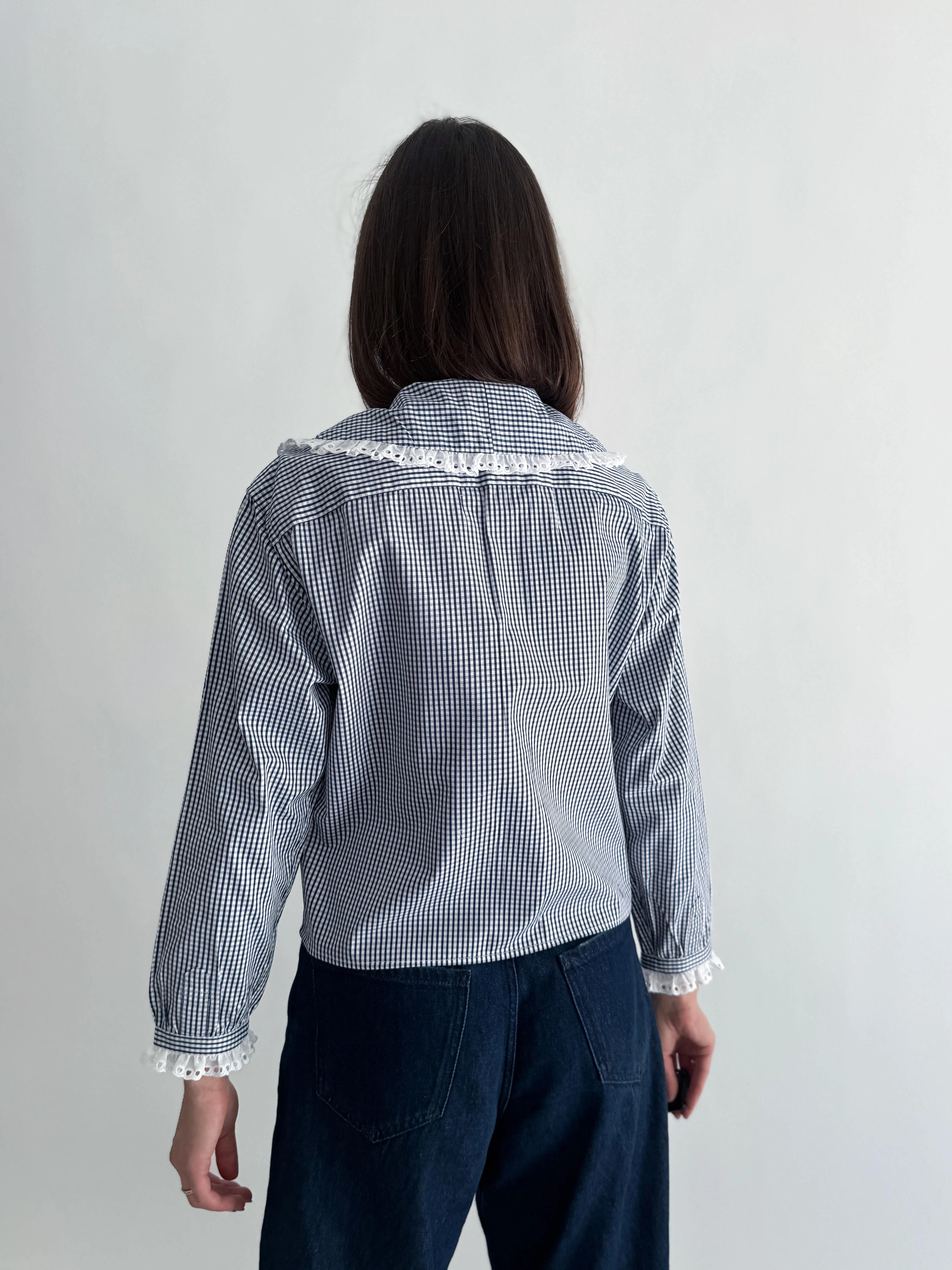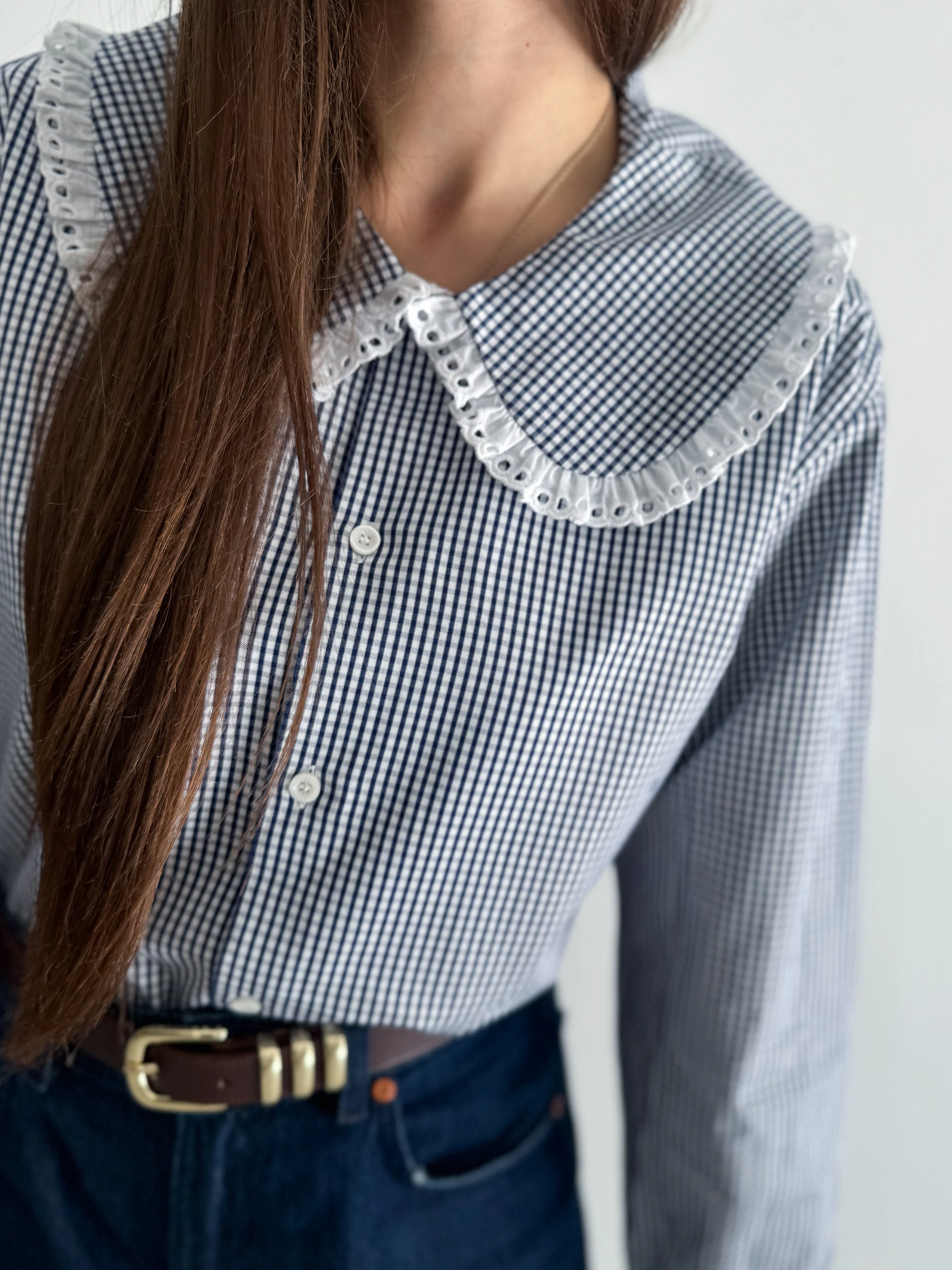Koszula w granatową kratę z koronką