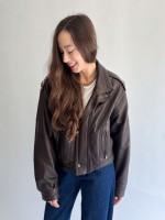 Skórzana ciemno brązowa kurtka